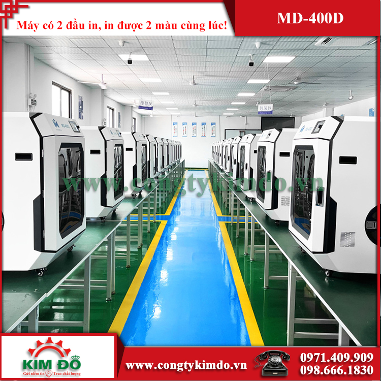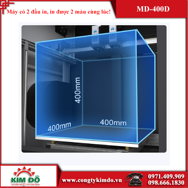 Máy in 3D MingDa MD-400D khả năng in đa vật liệu và thiết kế linh hoạt, máy có tiềm năng định nghĩa lại những kỳ vọng trong lĩnh vực in 3D. Máy in 3D có hệ thống IDEX , 2 đầu in in hai chất liệu khác nhau.