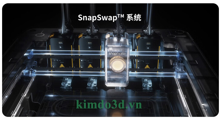 Và sự xuất hiện của Snapmaker U1 đã tạo ra hướng đi mới bằng cách sử dụng công nghệ “thay đầu in ” thay vì “đổi sợi nhựa” truyền thống.Hệ thống này gọi là hệ thống “SnapSwap™”.